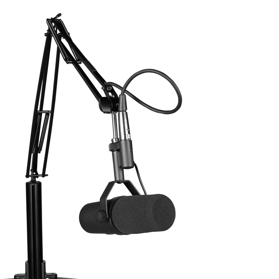 Progettato per integrarsi in modo ordinato e funzionale negli spazi ridotti di home studio e setup da streaming, questo stand all-in-one include tutto il necessario per live streaming, podcast, tutorial video e produzione di contenuti. Si fissa saldamente al bordo della scrivania grazie a un morsetto robusto e offre una struttura verticale con due bracci regolabili in altezza e rotazione, su cui montare microfoni, luci, smartphone e fotocamere.