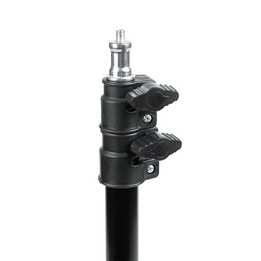 - Un supporto da tavolo con base tonda compatta e un treppiede pieghevole