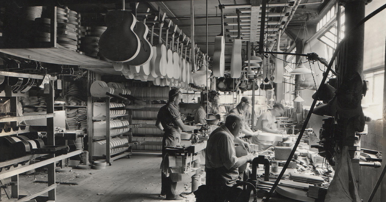Orville Gibson inizia a realizzare e vendere strumenti ricavati da legno massello nel 1894, nel suo laboratorio di Kalamazoo, Michigan. In quegli anni la chitarra non aveva un posto di rilievo nella musica americana. Grazie a lui, a Lloyd Loar, Ted McHugh, Walter Fuller e, successivamente, al team della Golden Era, Gibson si è evoluta da semplice azienda di strumenti a una delle famiglie di marchi più influente nel mondo della musica. Nel dopoguerra, Gibson sviluppò innovazioni che modificarono il suono e la forma della musica: le chitarre con più pickup, la Les Paul, le serie ES, Flying V, Explorer, SG, Firebird, il pickup P-90 e l’humbucker, oltre agli amplificatori. Negli anni ’60 vennero prodotti i primi effetti a pedale al mondo, nuovi pickup e altri strumenti elettrici e acustici, come la Hummingbird e la Dove. In questo periodo Gibson si unì al suo ex concorrente Epiphone. Dagli anni ’70 al 2010 la produzione di Gibson si riorganizza, con la creazione di Gibson USA, di Gibson Acoustics e della Gibson Custom Shop, oltre all’acquisizione di Kramer, marchio che aveva conquistato la fedeltà dei musicisti rock degli anni ’80. Nel 2018 cambia la proprietà dell’azienda e si assiste a una nuova Golden Era che aumenta la fanbase e, ancora oggi, continua a creare legami nella comunità musicale internazionale.