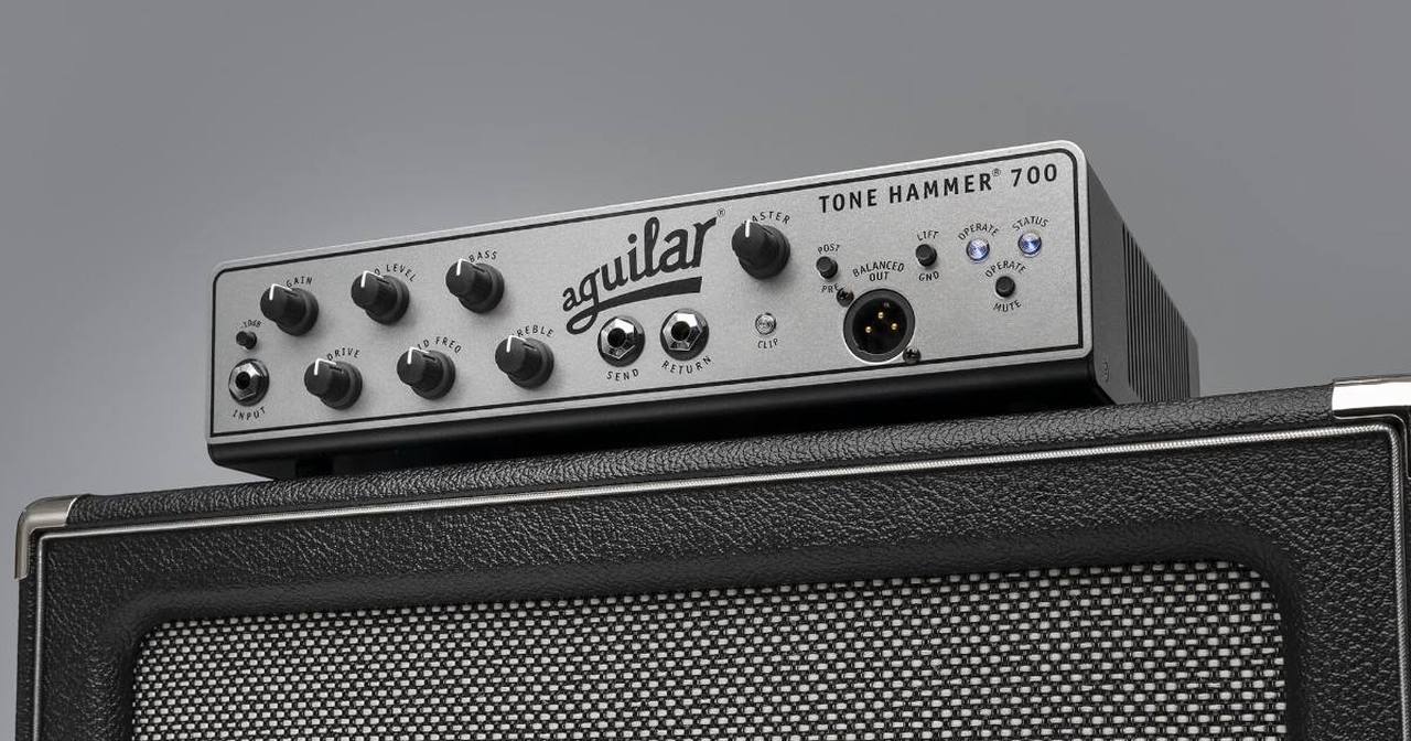 Tone Hammer 700 è la testata per basso di casa Aguilar da 700 Watt di potenza, con un preamp a stato solido in classe D. Presenta un ingresso con pad da -10dB, due uscite speakon, un'uscita bilanciata XLR con switch pre/post eq e ground lift, uscita per accordatore e mandata effetti. Sono presenti i controlli di eq con banda delle medie regolabile e il drive con circuito Adaptive Gain Shaping.