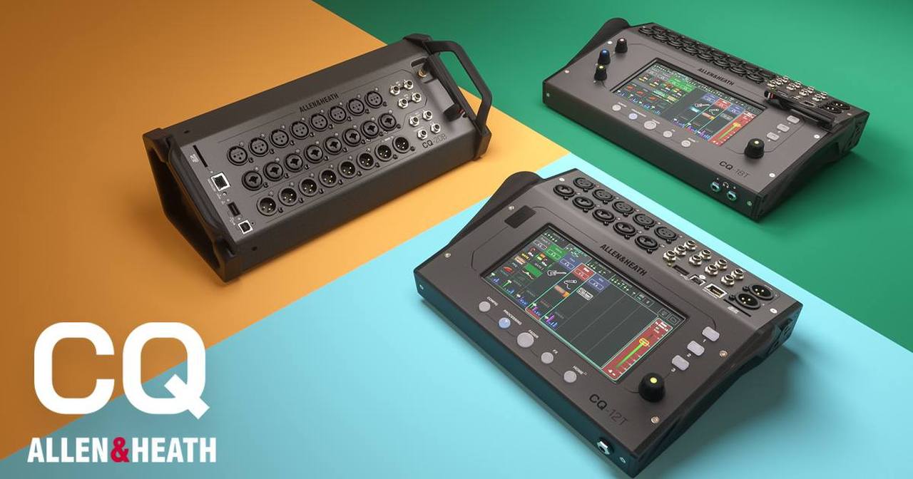 La nuova serie di mixer digitali ultracompatti CQ della Allen & Heath è costruita intorno a un innovativo motore di elaborazione FPGA a 96kHz e comprende i mixer da tavolo CQ-12T e CQ-18T, entrambi dotati di uno schermo multi-touch da 7”, e il mixer da palco portatile CQ-20B. Tutti sono controllabili da remoto tramite l’app gratuita CQ-MixPad per Windows, MacOS, iOS e Android da un massimo di 2 dispositivi in contemporanea. L'app CQ4You consente invece a 6 artisti di controllare il loro mix di monitoraggio personale dai propri dispositivi mobili.