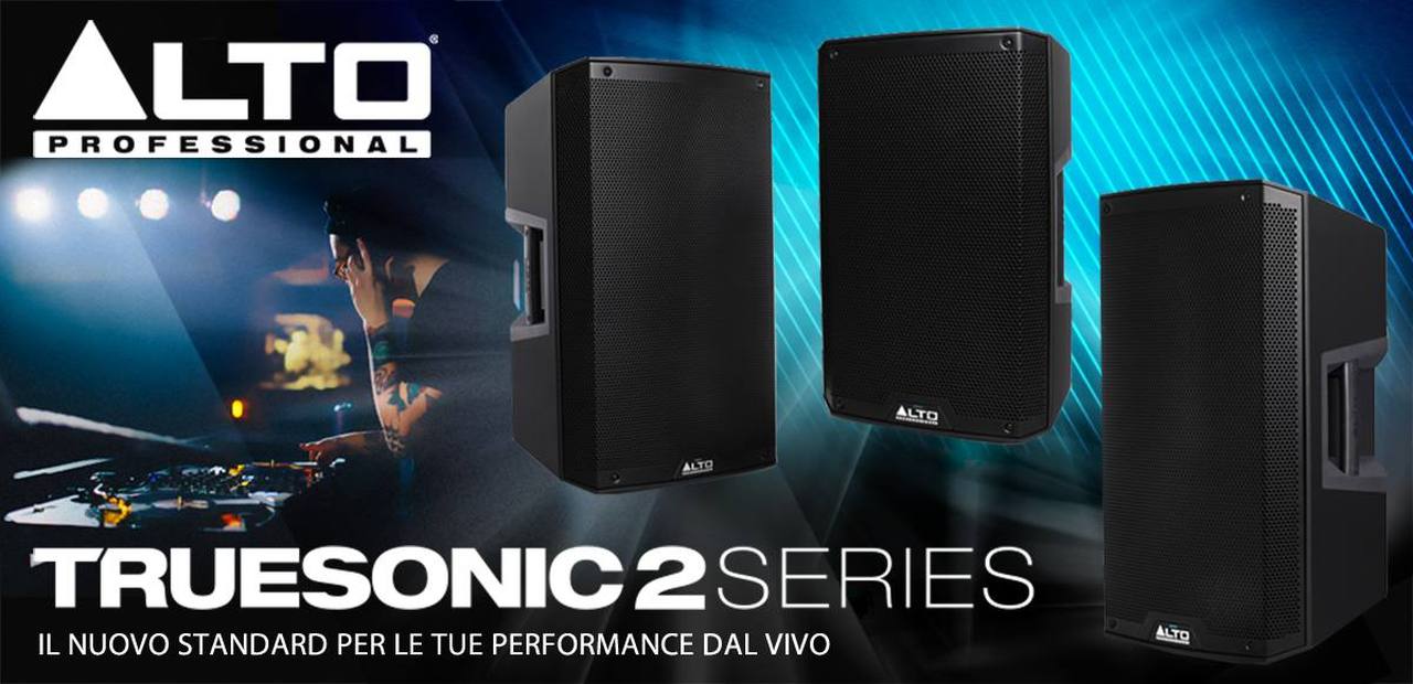 La serie di diffusori amplificati in classe D Truesonic 2 prodotta dalla Alto Professional comprende 6 modelli di casse a 2 vie dalla potenza di 1100W di picco (550W continui): TS208, con woofer da 8”, TS210, con woofer da 10”, TS212, dotato di un woofer da 12” e TS215 con woofer da 15”.