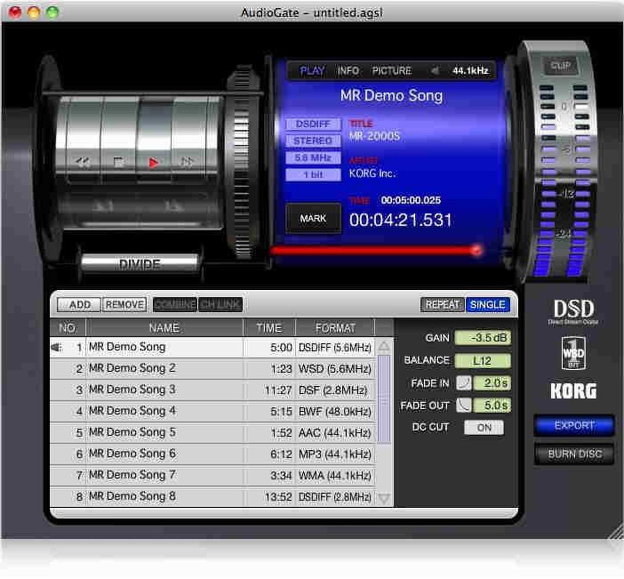 Ricordiamo che il sofisticato Player AudioGate3 può essere utilizzato il versione Full da tutti gli utenti Korg dei prodotti a tecnologia 1-bit, cioè DS-DAC o MR, ma in generale può essere scaricato ed usato da tutti gli utenti.