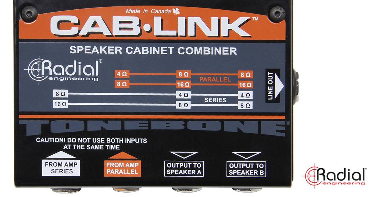 Cab-Link è una soluzione semplice e compatta per i musicisti che hanno sul loro amplificatore un'uscita speaker cabinet singola ma vogliono collegare due cabinet simultaneamente.
