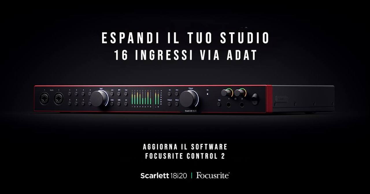 Focusrite aggiorna la gamma Scarlett 4th Gen: ADAT I/O fino a 16 canali sulla 18i20, gruppi monitor per il surround e controllo Auto Gain