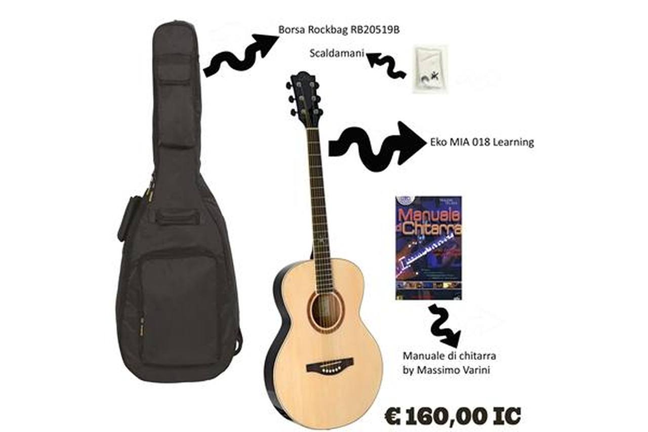 Eko e Massimo Varini non hanno pensato ad un semplice kit di chitarra, ma a un vero e proprio invito ad imparare a suonare questo meraviglioso strumento, con una chitarra ed un' offerta pensata e studiata proprio per chi approccia questo mondo.