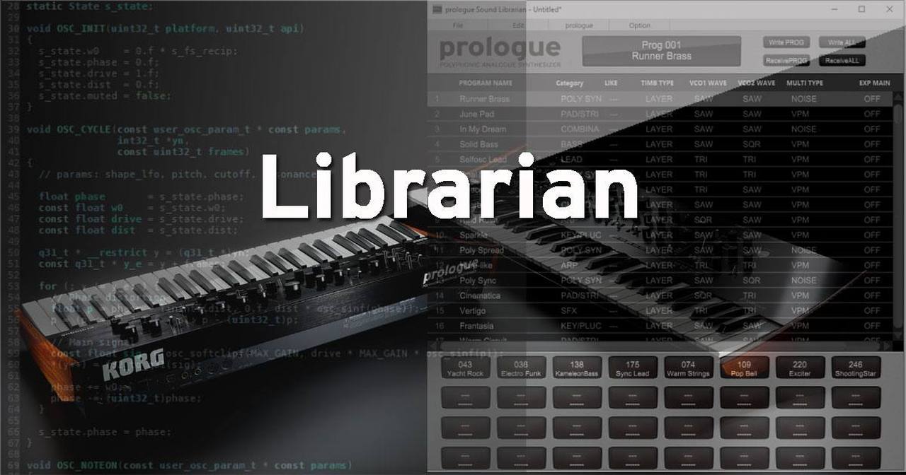 KORG è inoltre lieta di annunciare il rilascio del nuovo Software Librarian dedicato per prologue che consente tramite computer la gestione dei Program come ad esempio: caricare, cancellare Program, User Oscillator ed FX. Il Sound Librarian è un software estremamente user-friendly che facilita enormemente la preparazione e la gestione dello strumento, il tutto tramite un semplice collegamento USB/MIDI.