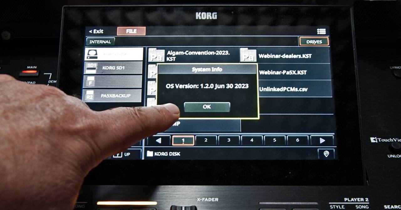 KORG Pubblica un nuovo importante aggiornamento di sistema operativo Vers. 1.2.0 per l’ammiraglia degli arranger Pa5X. La nuova release introduce numerose nuove funzioni: come ad esempio la compatibilità con i dati Pa4X, il supporto di Add On di risorse musicali, l'editing massivo sull'area degli Style/Pad e molto altro. Ottimizza inoltre la velocità e la stabilità di sistema, oltre ad un accurato debug generale.