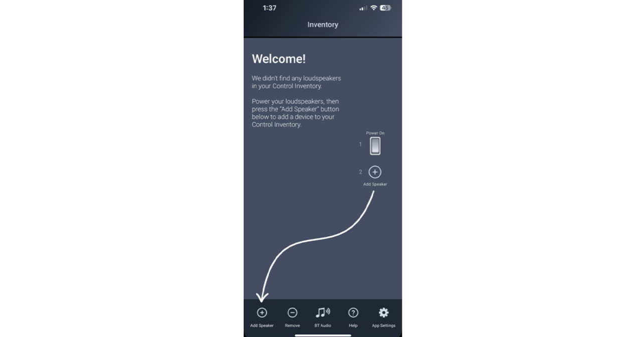 2) Dalla schermata Inventario, premi il pulsante "Aggiungi altoparlante" (add speaker) nella parte inferiore dello schermo.