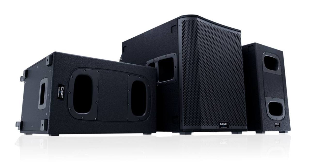 La serie QSC KS propone dei subwoofer attivi con amplificatori in classe D e con un DSP integrato che ci permette il settaggio di impostazioni avanzate. Il modello KS112 è un subwoofer ultracompatto, il KS212C ha le stesse dimensioni ma ha un utilizzo più direzionale grazie alla possibilità di impostare un pattern polare a cardioide con una sola unità, invece con due modelli QSC KS118 possiamo ottenere lo stesso risultato selezionando dal menu dei preset la configurazione dedicata.