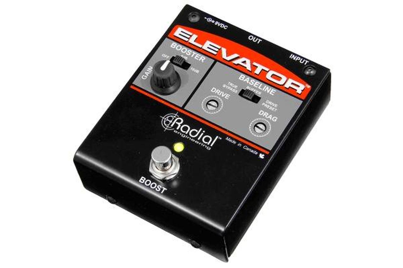 Radial Elevator: unità con buffer e power booster insieme, progettato per aumentare le prestazioni di piccoli amplificatori in classe A e dotare amplificatori più grandi di timbriche più consistenti. Per assicurare la massima integrità del segnale, l’Elevator è prodotto a mano in Canada e vanta un’elettronica in classe A 100% discreta. Il circuito buffer è lo stesso inserito nel pluripremiato Radial JD7 Injector utilizzato da Carlos Santana, John Petrucci, Steve Vai, Kerry King e Joe Perry. Utilizzando a valori alti i controlli di un piccolo amplificatore per chitarra si ottiene un timbro unico che non può essere replicato. E’ come aggiungere un overdrive naturale al percorso del vostro segnale.