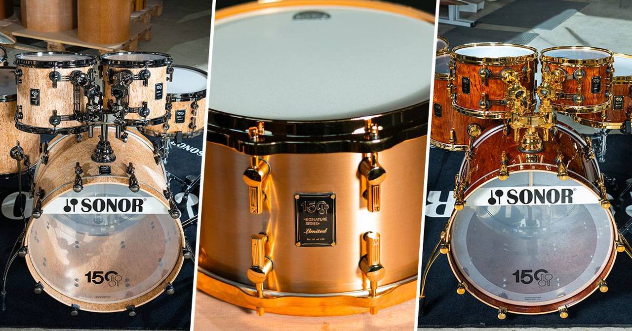 Sonor celebra il suo 150esimo compleanno lanciando sul mercato il rullante 150th Signature 14"x08" e quattro modelli di batterie acustiche, le Signature e le Sonorlite, entrambe disponibili in due versioni e in edizione limitata.