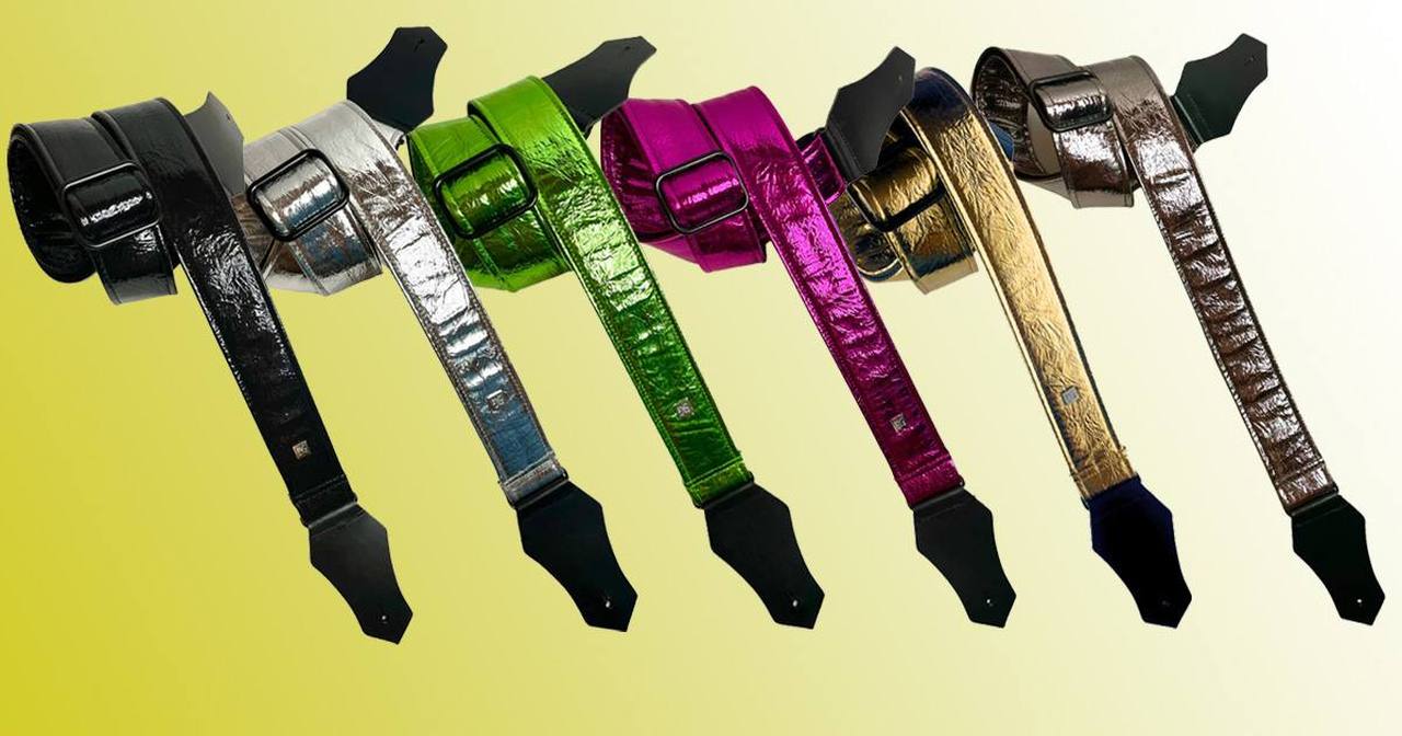 La Distressed Vernice Collection di Get'm Get'm è la nuova collezione per la Primavera 2023 di tracolle per chitarra o basso proposte con colori, trame e stampe originali. Sono realizzate in robusta ecopelle texturizzata increspata e invecchiata artificialmente con finiture lucide laminate. Brillanti, variegate, immediatamente riconoscibili sul palco sono l'accessorio ideale per ogni artista.