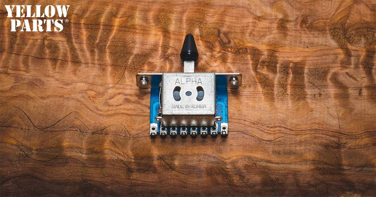 Il catalogo Yellow Parts offre una serie di componenti di elettronica per chitarra elettrica che coprono tutte le esigenze: da selettori a 3 o 5 vie a piastre jack e potenziometri.