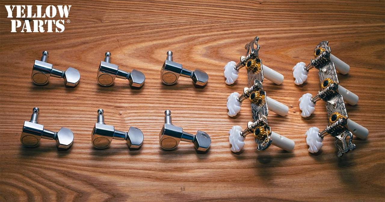 Il catalogo Yellow Parts offre meccaniche di ricambio per chitarra elettrica, acustica, acustica 12 corde e classica in diverse configurazioni e finiture.