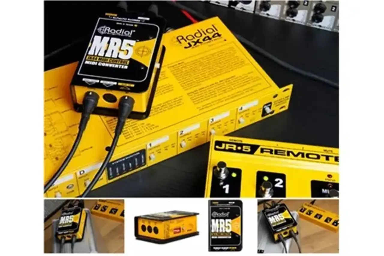 MR5 è un traduttore di segnale MIDI che consente di utilizzare un controller MIDI per gestire i dispositivi JX44, JX42 o altri prodotti Radial che utilizzano il footswitch JR5. MR5 converte il flusso di dati MIDI dal controller nello stesso formato dati utilizzato da JR5, permettendo al musicista di gestire lo strumento e l’amplificatore con un sequencer, un pedale di controllo o qualsiasi altro setup di controllo MIDI.