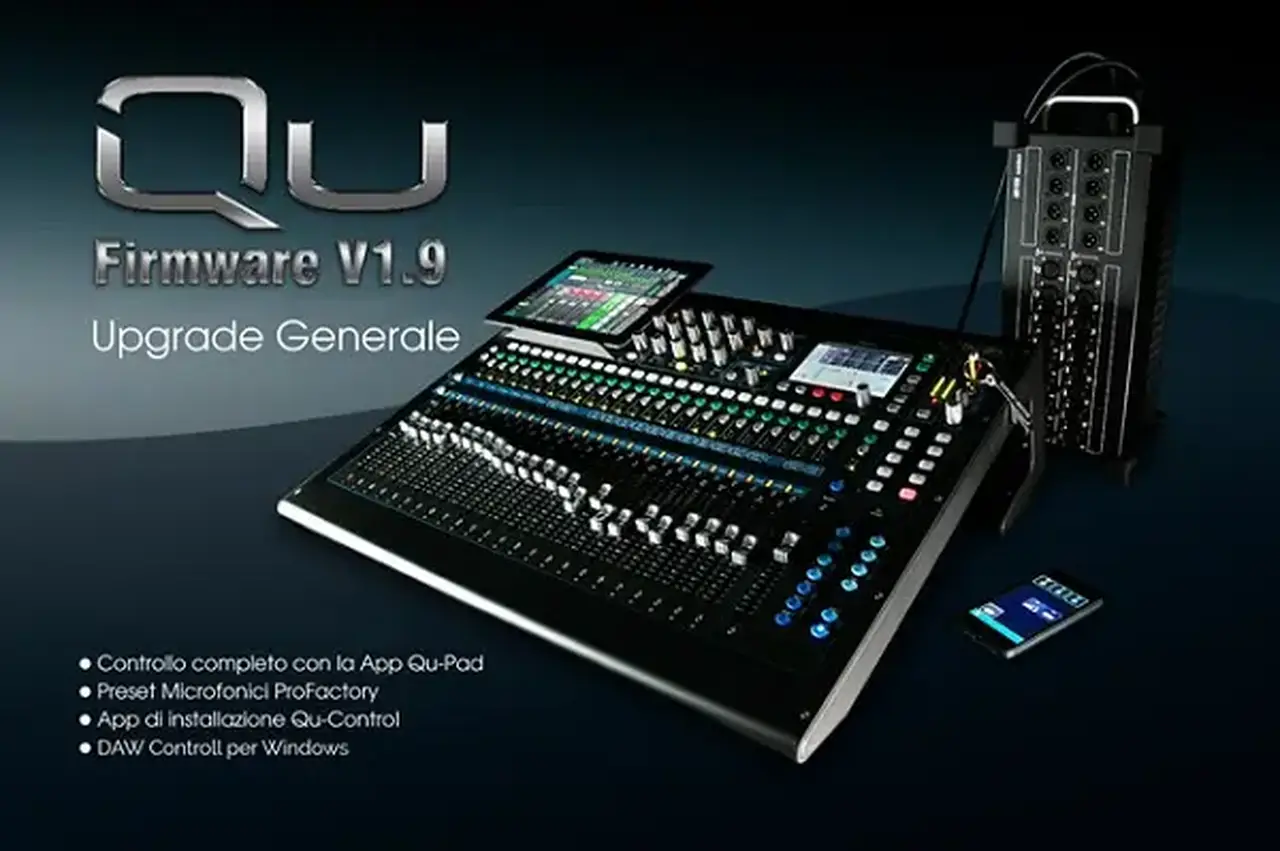 Qu-Pad V1.9 implementa totalmente tutte le impostazioni, i parametri ed i controlli dei mixer. Parallelamente al controllo delle funzioni di mixaggio dal vivo, processing, routing ed effetti, Qu-Pad offre ora l’accesso completo alla gestione delle scene e il controllo dei 15 SoftKey del mixer per tutta la serie Qu, AMM, collegamento I/O, registrazione e riproduzione audio stereo e multitraccia su Qu-Drive.