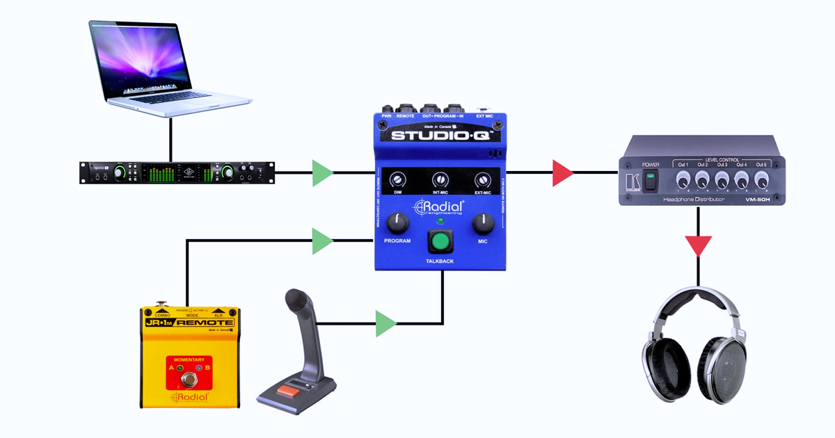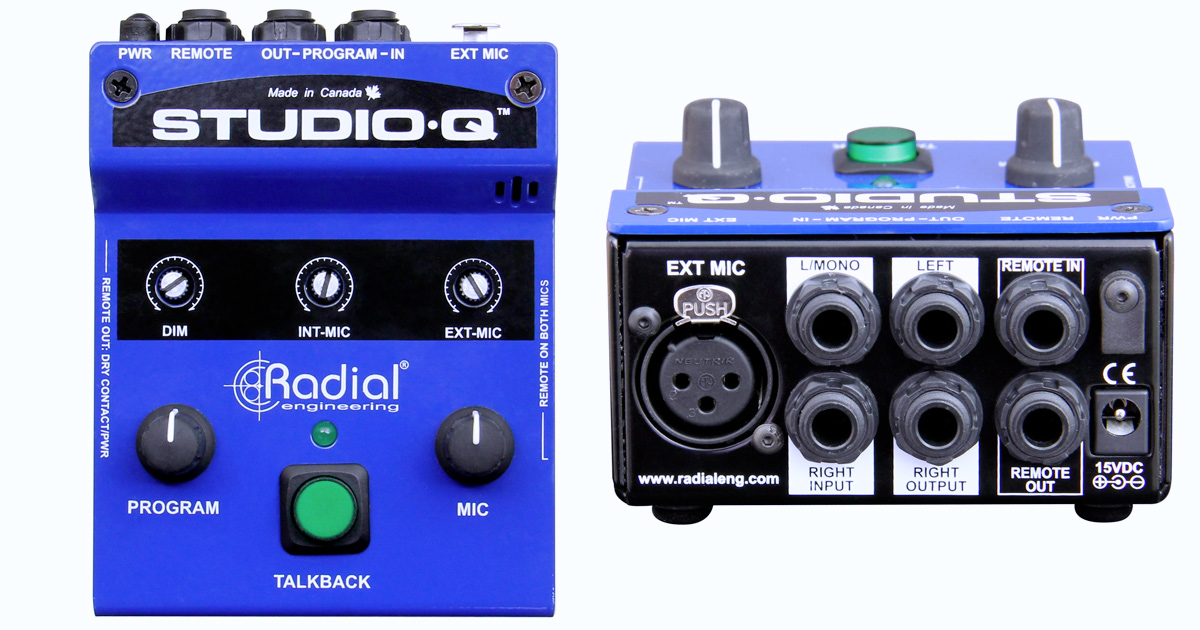 Radial Studio‑Q è Sistema di Talkback Stereo compatto progettato per facilitare la comunicazione tra sala di registrazione e regia, con microfono integrato, interfaccia utente intuitiva, audio di qualità, connessione immediata a console e monitor professionali e controllo remoto.