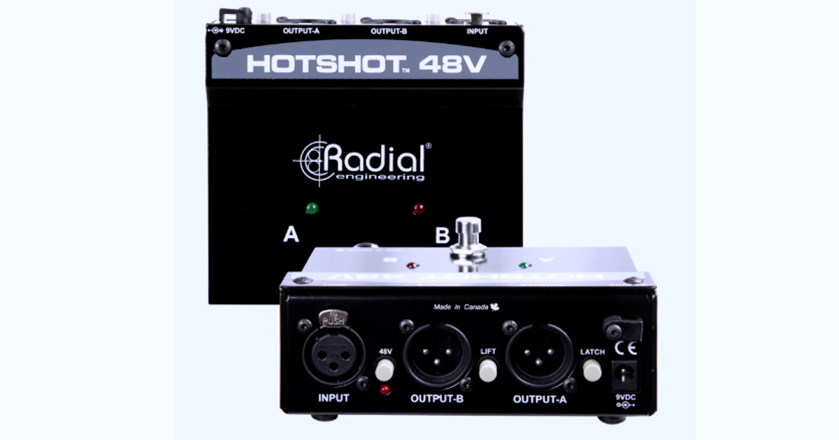 HotShot 48V di Radial Engineering è uno switcher attivo per microfoni a condensatore e dinamici che permette di commutare rapidamente e silenziosamente il segnale verso il monitoraggio sul palco o altre destinazioni. Dotato di alimentazione phantom 48V, pedale footswitch configurabile latching o momentary e indicatori LED, garantisce commutazioni senza rumori, proteggendo il segnale anche in presenza di perdite di corrente continua.