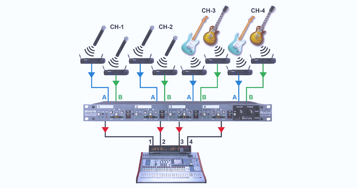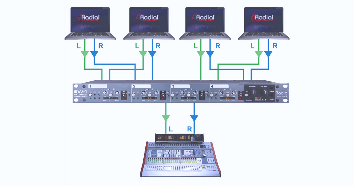 Radial SW4 è uno Switcher audio professionale a quattro canali bilanciati che consente di commutare tra diverse sorgenti audio o collegare più console o sistemi wireless all’interno dello stesso impianto, offrendo maggiore versatilità operativa e un backup affidabile durante performance live, eventi o produzioni broadcast.