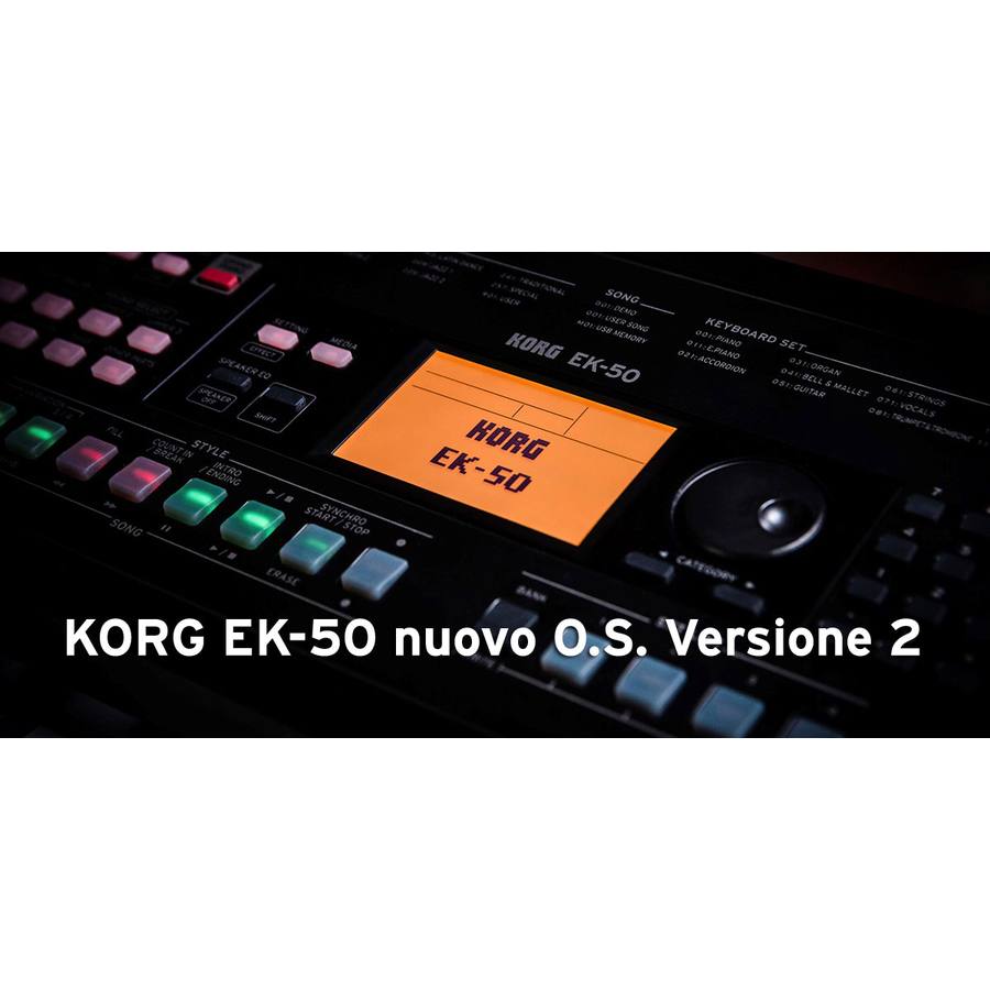 EK-50 è un Arranger con generatore Stereo PCM 64 voci di polifonia, più di 700 suoni delle famiglie timbriche più importanti a cui si aggiungono 280 Styles interattivi che arricchiscono ogni esecuzione con il supporto di una intera Band nei principali generi e stili musicali; tutti i suoni sono processati da 2 multieffetti Stereo. Il Player/Recorder interno registra ogni esecuzione in tempo reale, e può riprodurre direttamente da chiavetta USB file musicali MIDI, oppure Audio: Mp3 o Wav; EK-50 è dotata inoltre di un efficiente sistema d'amplificazione 10 W × 2, si alimenta sia dalla rete o a batterie per usarla veramente ovunque.