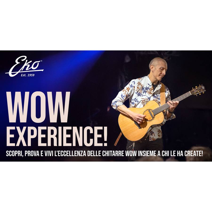 Una serie senza compromessi basata su una selezione di legni provenienti da tutto il mondo. WOW, acronimo di Wood Of the World Series, ma anche l'esclamazione di chi vede queste chitarre per la prima volta, rappresenta il top della gamma del catalogo EKO. Ogni singola chitarra è unica e ogni parte in legno è selezionata tra una vasta gamma di materiali pregiati come Cocobolo, Ovangkol, Koa, Ebano, Sapele e altri. Tutta la serie WOW è All Solid, quindi, con top, fasce e fondo in massello, viene esaltata la natura del legno a favore di una timbrica particolarmente specifica.