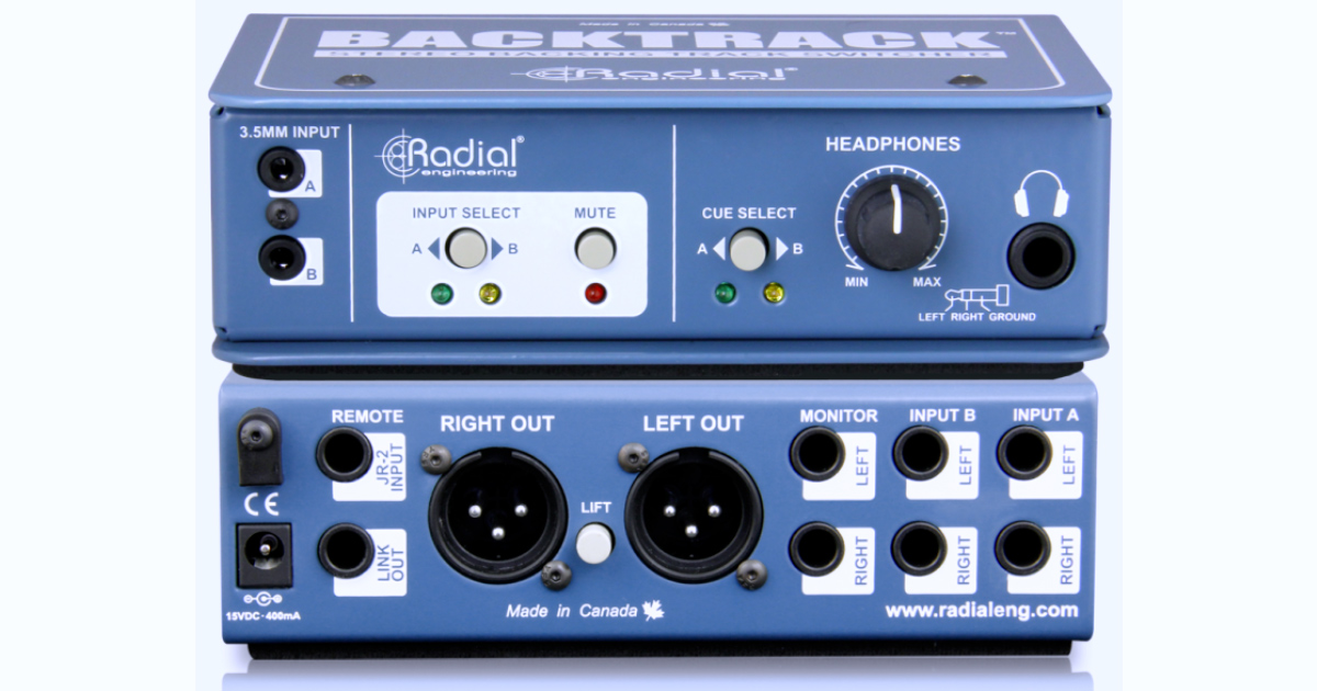 Radial Backtrack è uno switcher stereo compatto che consente di commutare rapidamente tra due sorgenti audio stereo (A/B) in contesti live o di playback. Dotato di ingressi ¼″ TRS e 3,5 mm, uscite XLR isolate da trasformatore e ground lift per eliminare ronzii e buzz da loop di massa, uscita cuffie con livello e selezione Cue, e controllo remoto tramite pedale JR-2 (opzionale). Offre flessibilità e affidabilità per gestire backing track ridondanti, sorgenti audio multiple sul palco o in installazioni professionali.