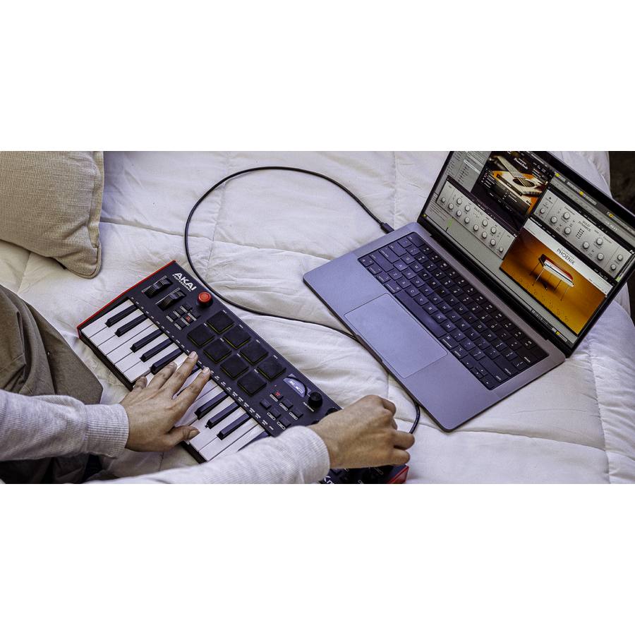 AKAI Professional MPK mini PLUS è un controller che genera e invia tramite USB messaggi MIDI utili al controllo di software, applicazioni o hardware musicale compatibili con lo standard universale MIDI. Non è dotato di suoni interni e funziona esclusivamente inviando messaggi di controllo che saranno tradotti dal vostro software o hardware musicale in suono, che uscirà quindi dalla vostra interfaccia audio su computer o dalle uscite audio del vostro sintetizzatore. Lo strumento non possiede quindi un’uscita audio.