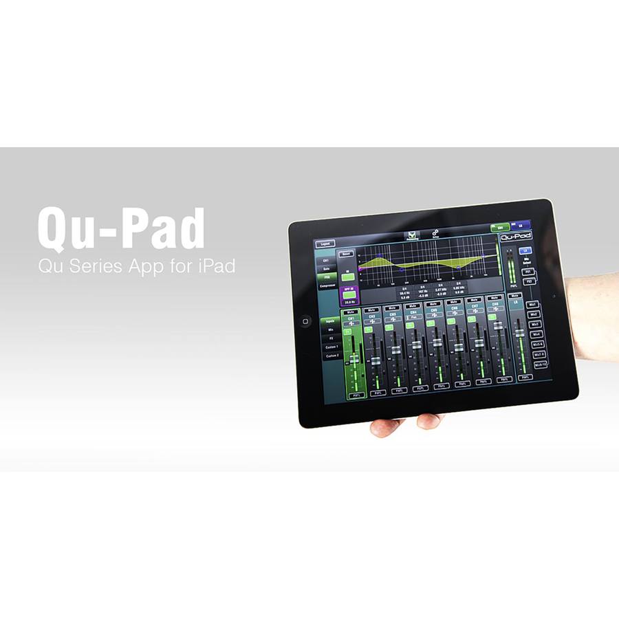 Allen & Heath Qu-Pac è progettato per integrarsi perfettamente con l'app Qu-Pad completa di tutte le funzionalità necessarie per utilizzare il mixer, fornendo un accesso facile e veloce a tutte le impostazioni, inclusa l'elaborazione dei canali, misuratori e RTA, rack FX, gestione delle scene, controllo audio USB, configurazione menù e molto altro ancora.