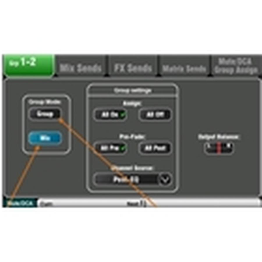 Allen & Heath Qu-24 ci consente di creare 2 gruppi stereo, Il firmware V1.8 ha introdotto la modalità Group Mix. Utilizzando i gruppi in modalità Mix, il Qu-24 può fornire fino a 4 mix mono e 3 stereo.