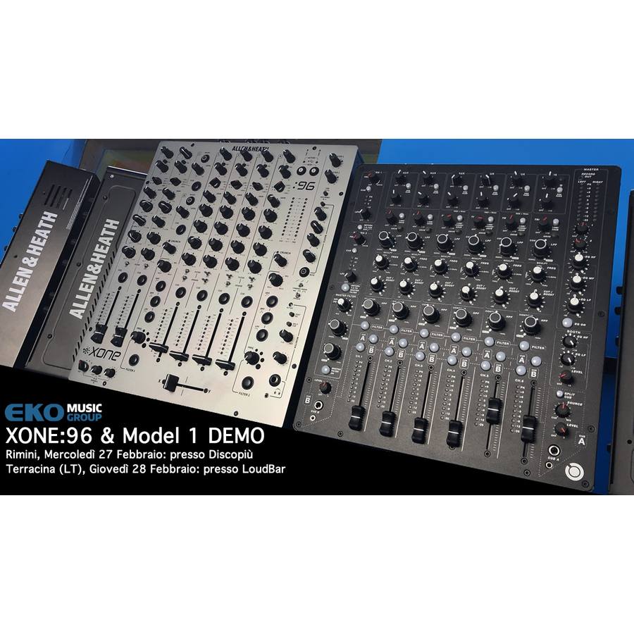 Allen & Heath XONE:96 rappresenta il top dei mixer analogici per club e DJ, con una configurazione 6+2 canali, una doppia interfaccia audio USB 12In/12Out con convertitori a 32-bit/96kHz, due filtri multimodo VCF con distorsione armonica (crunch), 2 mandate, 4 ritorni, doppio preascolto e uscite multiple con insert sul master principale.