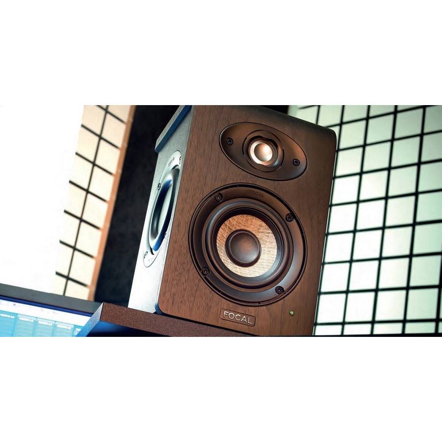 Focal Shape 65, monitor nearfield attivo; 80+25 watt classe ab; woofer: da 6,5" flax cone; tweeter: da 1" alluminio-magnesio 'M' shaped; due radiatori passivi laterali da 6,5"; risposta in frequenza (+/-3 db): 40 Hz - 35 kHz; max spl peak@1m (musical signal): 109 db; impedenza ingressi: 10 kΩ controlli: filtro passa-alti, bassi, medi, alti; power switch; funzione automatica di standby; costruzione: mdf 12 mm; finiture: vinile, legno di noce evernice nera; connettori: xlr bilanciato ed rca sbilanciato con sensitivity compensation; staffa per montaggio a parete ed a soffitto (viti ed accessori non forniti); dimensioni: 218 x 285 x 355 mm; peso: 8,5 kg.
