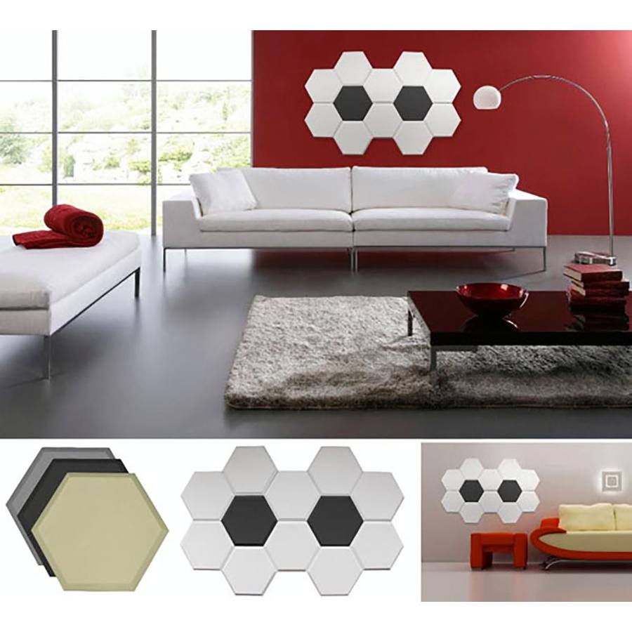 I pannelli Primacoustic Element rappresentano una soluzione facile da installare per il trattamento di ambienti in cui è richiesto il massimo controllo sulle prime riflessioni. Realizzati in lana di vetro ad alta densità hanno una dimensione di 35,50 x 40,50 cm ed una forma esagonale, spessore 38mm. Sono progettati per essere distanziati seguendo un pattern predefinito, su grandi, piccole superfici o pareti per creare un effetto chiamato “Primacoustic Soft Diffusion”. I pannelli Element rappresentano un'alternativa conveniente ai classici diffusori rettangolari o skyline posizionati lungo tutte le superfici della stanza.