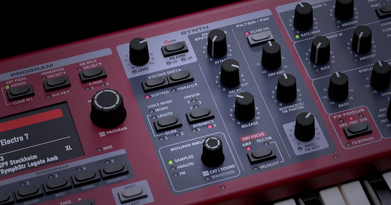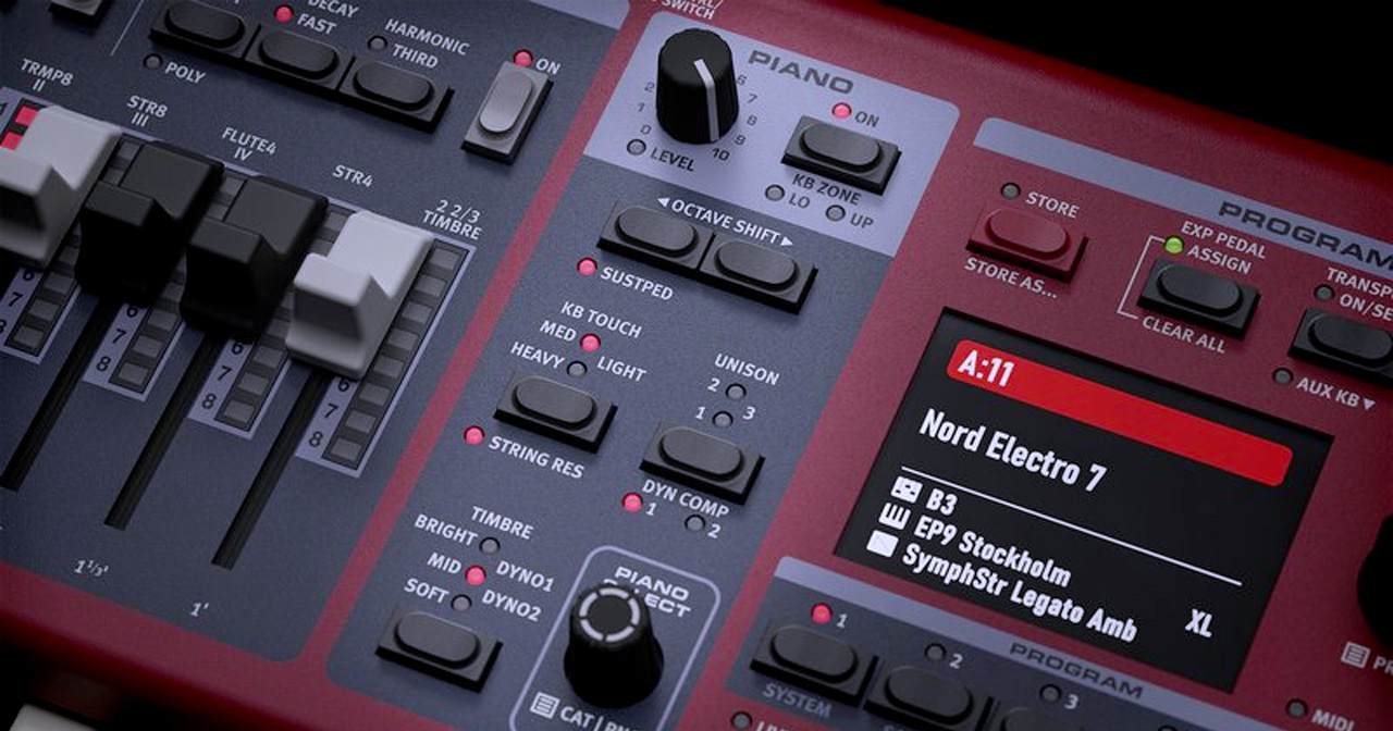 La sezione Synth della Nord Electro 7 HP integra una nuova architettura che combina sintesi Virtual Analog (VA), FM e campionamenti di alta qualità provenienti dalla Nord Sample Library. Gli strumenti offrono modalità di esecuzione Mono, Legato e Glide, filtro Low-Pass con controllo di risonanza e doppi inviluppi ADR per modellare dinamica, timbro e risposta dei suoni. La Sample Library include collezioni di strumenti premium come Spitfire Strings, Supreme Horns, Mellotron e Symphobia, permettendo al musicista di avere a disposizione una gamma completa di timbri orchestrali e synth.