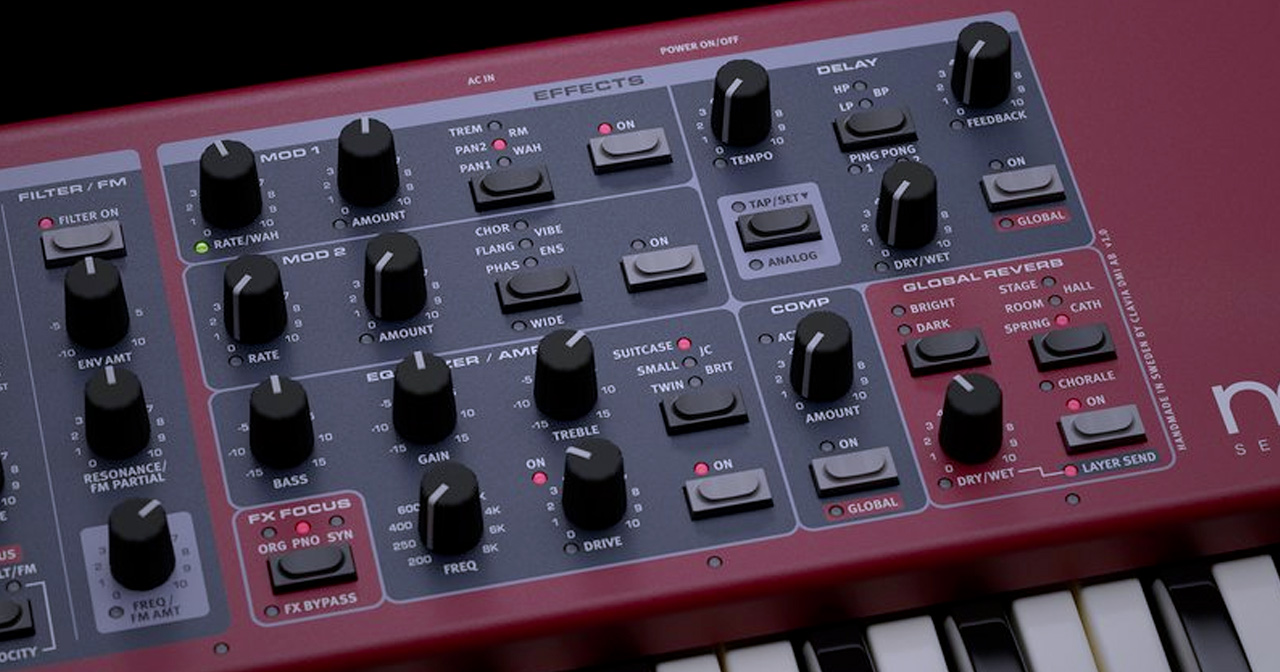 Ogni sezione dispone di effetti dedicati, inclusi modulazioni con controlli Rate e Amount, nuovi modelli di amplificatore e un riverbero globale con gestione delle mandate (send) per ogni layer. Grazie alla compatibilità con la Nord Sample Library e all’accesso diretto ai parametri principali, Nord Electro 7 rappresenta una soluzione completa e affidabile per performance live, studio e contesti professionali.