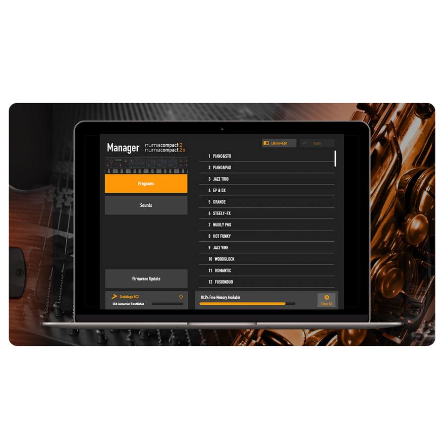 E' un utilissimo e potente applicativo Software gratuito (Pc/Mac), messo a disposizione da Studiologic, che assolve fondamentalmente due funzioni: l'aggiornamento del Firmware dello strumento, e il caricamento e la gestione dei nuovi suoni pubblicati nella Sound Library gratuita che ampliano le possibilità timbriche di questa tastiera, una caratteristica questa, di alto profilo professionale.