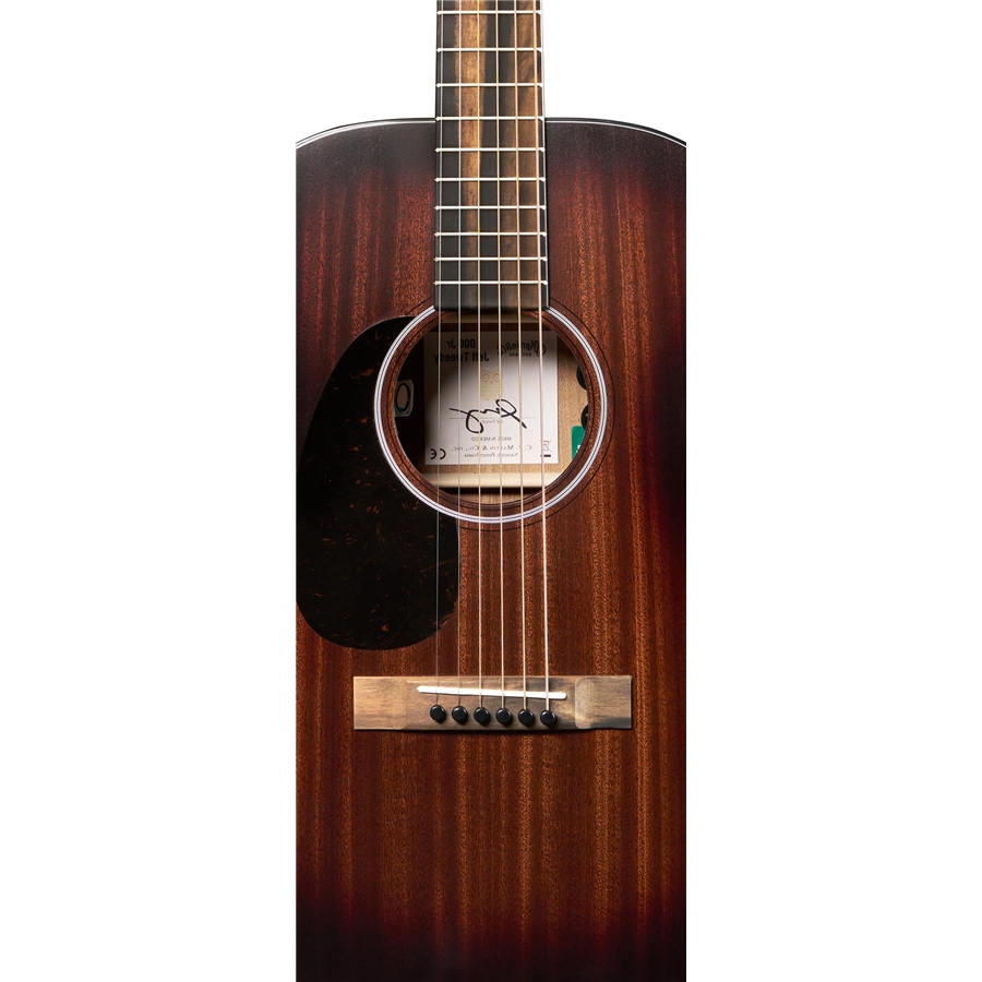 La finitura satinata Tweedy Burst sulla tavola armonica, il binding nero e gli intarsi in stile Foden riflettono lo stile sobrio di Jeff, mentre il manico Performing Artist garantisce una suonabilità comoda anche per lunghe sessioni. L’elettronica Martin E1 integrata, con accordatore, rende la chitarra pronta per il palco o lo studio.