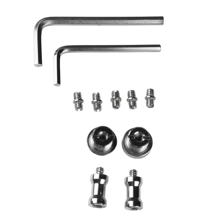 Adattatori inclusi: 5x 1/4"-20 M/M, 2x 1/4"-20 F ? 5/8"-27 M, 2x spigot, 2x gooseneck (15 cm e 33 cm)