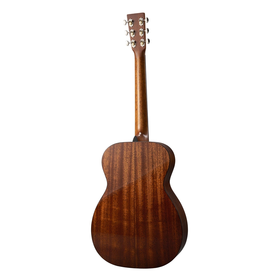 Realizzata in mogano massello certificato FSC®, con X-bracing in abete europeo scallopato, produce un suono asciutto e focalizzato, perfetto sia per il fingerpicking che per lo strumming. La finitura personalizzata Tweedy Burst, il binding effetto tartaruga e gli intarsi in stile Foden riflettono lo stile sobrio di Jeff.