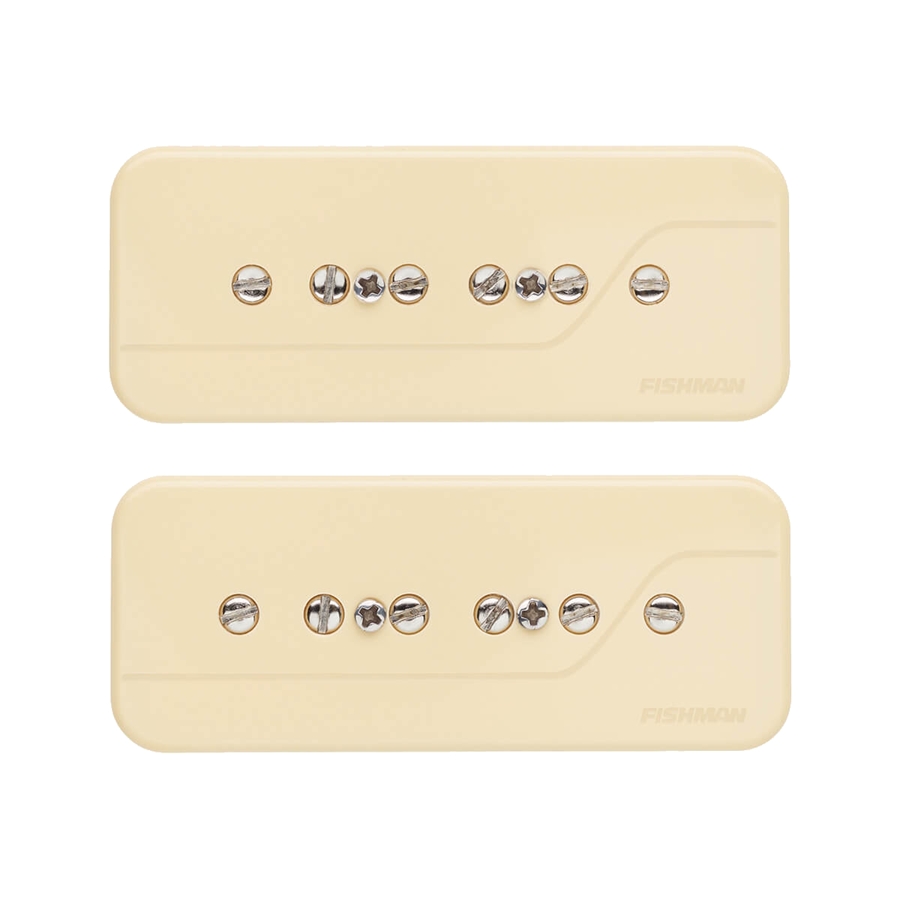 PRF-P90-SC2 è un set di 2 pickup a 3 voci della serie Fishman Fluence P90 Classic 6-String in finitura Cream. Il set è composto da un pickup BRIDGE per la posizione al ponte e un pickup NECK per la posizione al manico.
