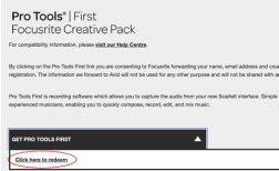 Cliccando su “Get Pro Tools FIRST” troverà il link "Click here to Redeem" sul quale dovrà cliccare per essere indirizzato al sito della Avid (azienda produttorie del software) quindi procedere alla creazione dell'account e ai vari download.